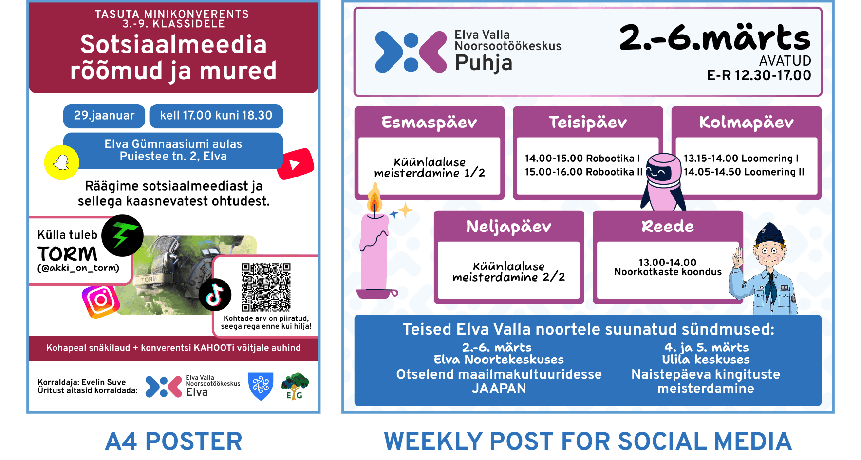 I designed the visual identity for Elva Youth Center, starting from a logo selected as the winning entry in a public competition. The project evolved into a flexible identity system for use across digital, print, and spatial applications, reflecting openness, collaboration, and diversity.